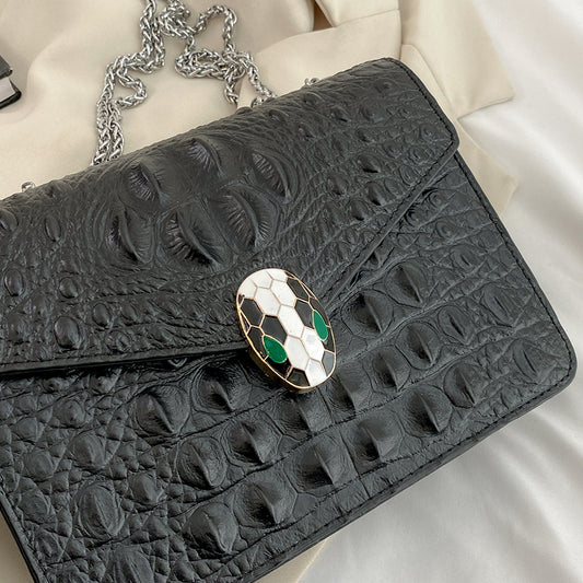 Cowhide Crocodile Pattern Chain Messenger Bag
